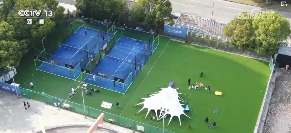 在上海浦東的創(chuàng)意園區(qū)內(nèi),藏著一個板式網(wǎng)球和匹克球的運動場,不少人結(jié)伴前來體驗。