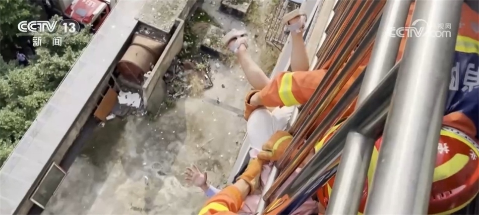 妻子雖然擔心費關(guān)雙的安全,但是面對這種情況,她并沒有阻止自己的愛人。緊接著,費關(guān)雙從自家陽臺上翻出,沿著樓墻一點一點地向著隔壁的陽臺爬去。