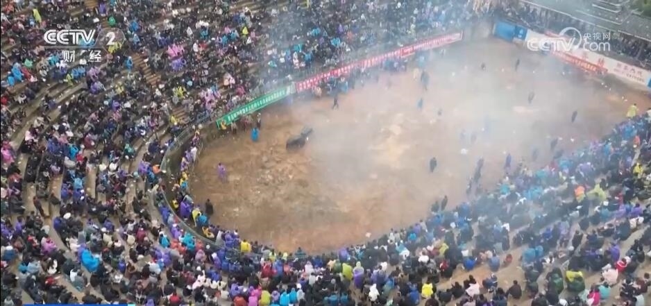 當天的斗?;顒庸灿衼碜詮慕h、榕江縣的18對斗牛參加對抗?;顒蝇F場人頭攢動,熱鬧非凡,圍觀的村民和游客們紛紛搶占最佳視野位置,爭相目睹斗牛對抗的精彩畫面。