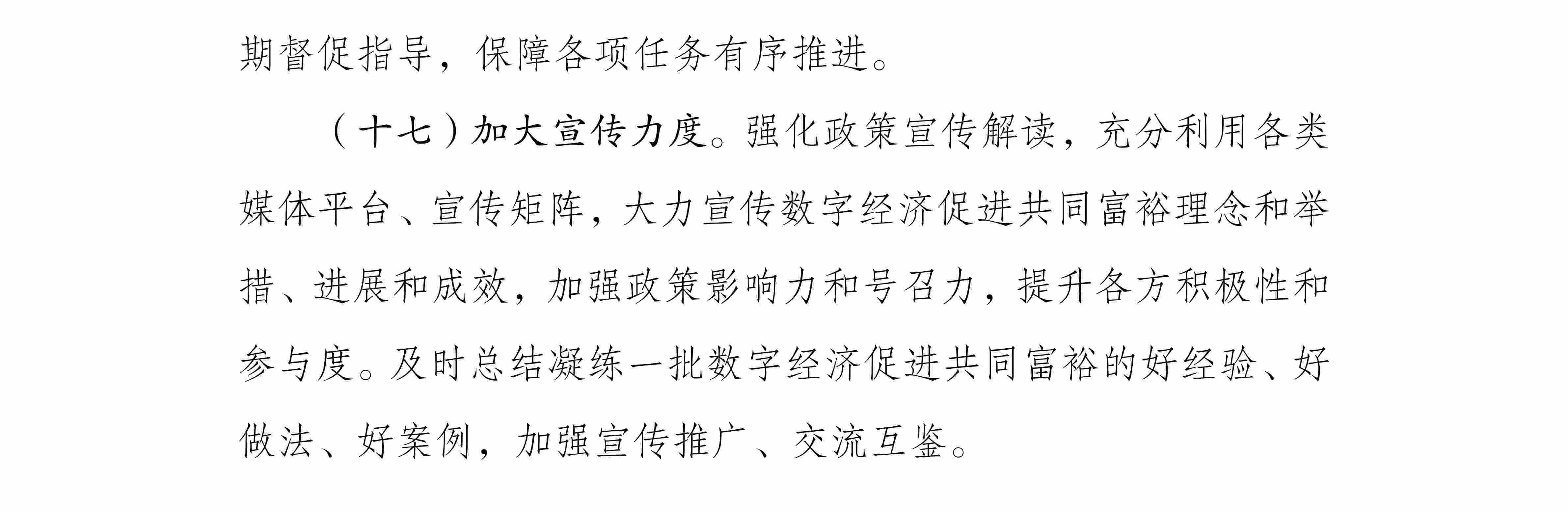央視網(wǎng)消息:據(jù)國家發(fā)展改革委、國家數(shù)據(jù)局,為全面貫徹黨的二十大精神,按照中央經(jīng)濟工作會議部署,推動數(shù)字技術和實體經(jīng)濟深度融合,不斷做強做優(yōu)做大我國數(shù)字經(jīng)濟,通過數(shù)字化手段促進解決發(fā)展不平衡不充分問題,推進全體人民共享數(shù)字時代發(fā)展紅利,助力在高質量發(fā)展中實現(xiàn)共同富裕,研究制定了《數(shù)字經(jīng)濟促進共同富裕實施方案》。