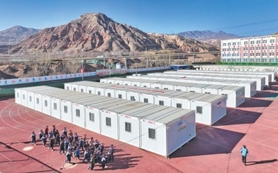 同樣是4日早晨,在民和縣官亭鎮(zhèn)中心學(xué)校,五星紅旗高高飄揚,一排排白色的活動板房里傳出瑯瑯讀書聲。教室里燈光明亮,嶄新的課桌上放著課本和作業(yè)本。從1月2日起,積石山6.2級地震青海震區(qū)的中小學(xué)線下復(fù)課復(fù)學(xué)。