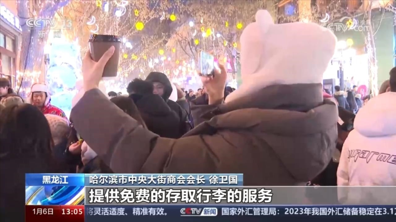 同樣火熱的還有哈爾濱百年老街——中央大街,游客們不僅可以欣賞風(fēng)格各異的建筑,還會被送上溫暖的姜糖水,感受冰城商戶的熱情。