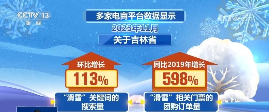 多家電商平臺(tái)數(shù)據(jù)顯示,2023年11月,關(guān)于吉林省“滑雪”關(guān)鍵詞的搜索量環(huán)比增長113%,“滑雪”相關(guān)門票的團(tuán)購訂單量同比2019年增長了598%。