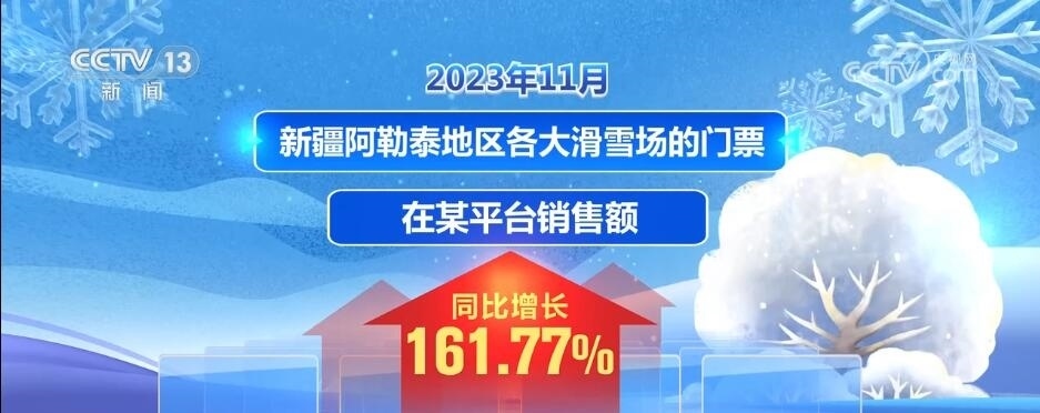 2023年11月,新疆阿勒泰地區(qū)各大滑雪場(chǎng)的門票在某平臺(tái)的銷售額同比增長了161.77%。