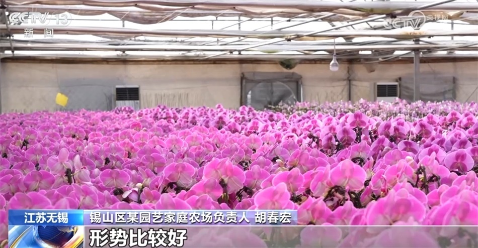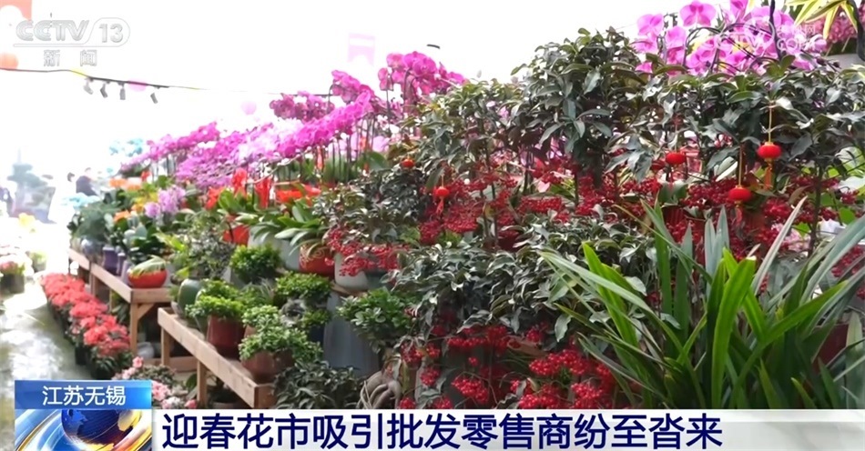 在江蘇無錫錫山國家現(xiàn)代農(nóng)業(yè)產(chǎn)業(yè)園的花卉中心,各家花卉門店前迎來一波波的買花人,蝴蝶蘭、大花蕙蘭、紅掌、仙客來等烘托喜慶氛圍的鮮花受到人們的喜愛。