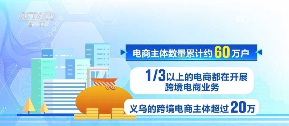 2023年,義烏的市場經(jīng)營主體突破100萬戶。其中,新設(shè)電商主體17.57萬戶,同比增長48.33%。電商主體數(shù)量累計約60萬戶,而三分之一以上的電商都在開展跨境業(yè)務,義烏的跨境電商主體超過20萬。