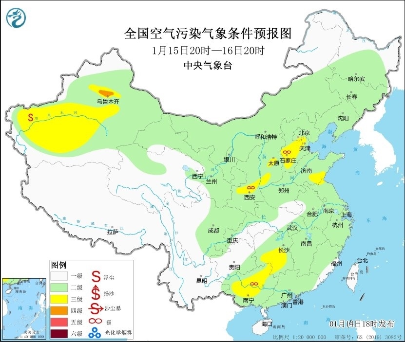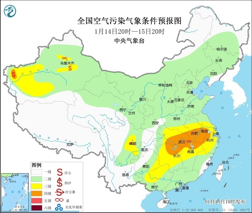 14日夜間至15日白天,受上游污染物傳輸影響,湖北、湖南、江西中北部等地有短時(shí)輕至中度霾。15日夜間起,受冷空氣和降水影響,區(qū)域大氣擴(kuò)散條件逐漸好轉(zhuǎn)。