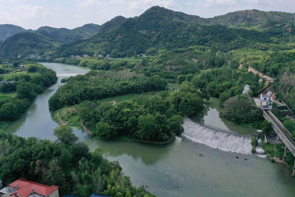 位于浙江省衢州市龍游縣的世界灌溉工程遺產(chǎn)姜席堰(2023年8月2日攝,無(wú)人機(jī)照片)。新華社記者 黃宗治 攝