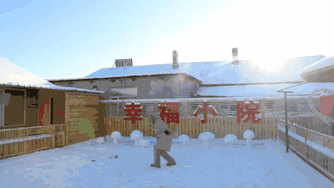中午,民宿經(jīng)營者史瑞娟趁著客人們休息,給雪人上色。今年冬天,史瑞娟在家門口堆了兩個大雪人,還把小院重新布置了一番。效果挺明顯,幾乎天天滿房。