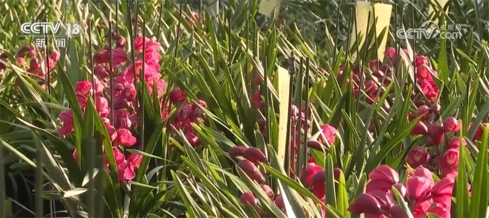 在云南,不同類(lèi)型的年宵花也開(kāi)始大量上市。在玉溪江川區(qū)九溪鎮(zhèn)的花卉大棚里,整齊擺放的大花蕙蘭競(jìng)相開(kāi)放。大花蕙蘭可單獨(dú)擺放,也可制作成胸花等小型花藝,特別是瓶插期長(zhǎng)達(dá)45天,成為這段時(shí)間的暢銷(xiāo)花。