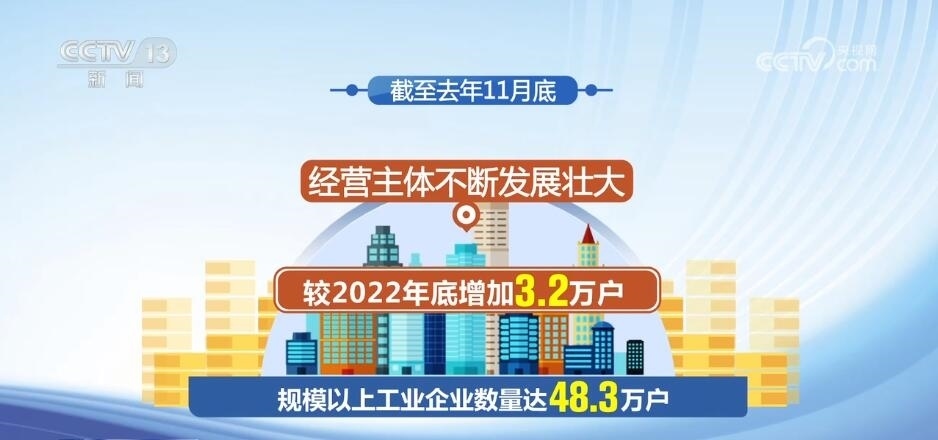 數(shù)據(jù)顯示,截至去年11月底,規(guī)模以上工業(yè)企業(yè)數(shù)量達(dá)48.3萬(wàn)戶,較2022年底增加3.2萬(wàn)戶,經(jīng)營(yíng)主體不斷發(fā)展壯大。制造業(yè)PMI生產(chǎn)經(jīng)營(yíng)活動(dòng)預(yù)期指數(shù)自2023年10月連續(xù)3個(gè)月上升,全年指數(shù)均高于臨界點(diǎn),制造業(yè)企業(yè)對(duì)發(fā)展信心穩(wěn)定恢復(fù)。