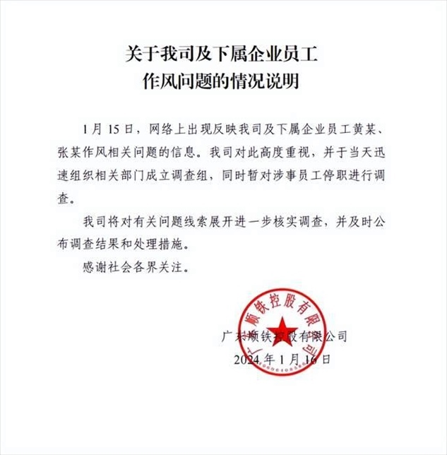 ·廣東一國(guó)資公司中層領(lǐng)導(dǎo)被指婚內(nèi)出軌女同事?涉事公司發(fā)布情況說明。