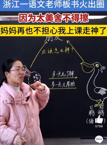 ·浙江一語文老師板書走紅,學(xué)生家長(zhǎng):孩子上課特別認(rèn)真。