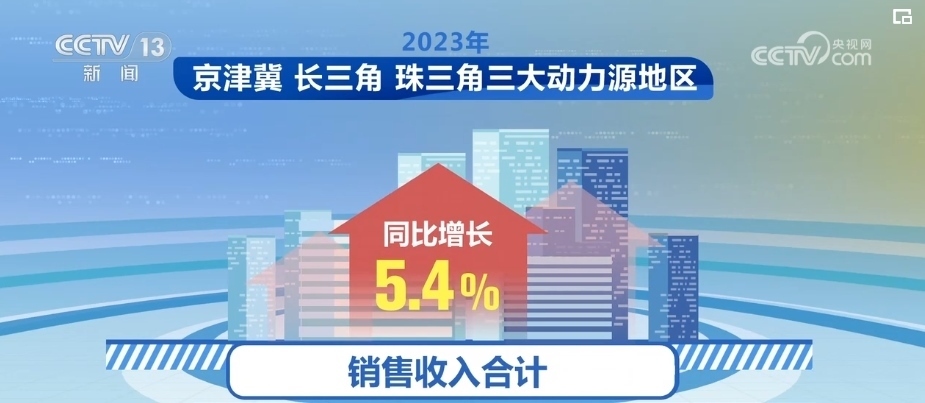 2023年,京津冀、長(zhǎng)三角、珠三角三大動(dòng)力源地區(qū)經(jīng)濟(jì)總體呈現(xiàn)較快發(fā)展態(tài)勢(shì),銷(xiāo)售收入合計(jì)同比增長(zhǎng)5.4%,占全國(guó)比重提高至54.1%,較2022年提高0.3個(gè)百分點(diǎn),帶動(dòng)作用持續(xù)增強(qiáng)。