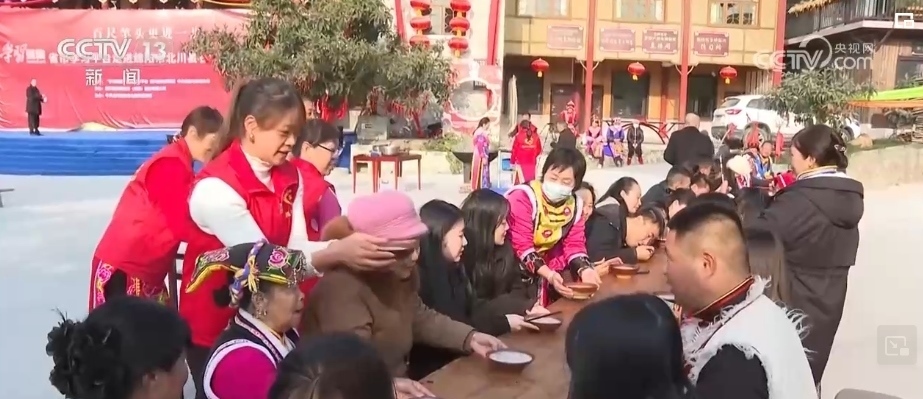 在四川綿陽(yáng)市北川縣石椅村,一大早,村民和志愿者就忙著熬制臘八粥。石椅村熬制的臘八粥是咸味的,食材除了糯米、花生、白蘿卜、胡蘿卜,還有當(dāng)?shù)氐奶禺a(chǎn)臘肉和豆干。經(jīng)過(guò)一個(gè)多小時(shí)的熬制,別具風(fēng)味的臘八粥就起鍋了。村民們擺上長(zhǎng)桌宴,把熱騰騰、香噴噴的臘八粥端到游客面前,一起感受年味兒。