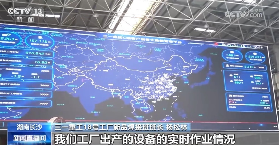 三一重工18號(hào)工廠新品焊接班班長 楊松林:來我們“燈塔工廠”參觀,我們都會(huì)看到一個(gè)超級(jí)大的屏幕,每一個(gè)閃光點(diǎn)都代表著我們工廠出廠的設(shè)備的實(shí)時(shí)作業(yè)情況。這些閃光點(diǎn)最后就形成了一個(gè)三一的挖掘機(jī)指數(shù),就相當(dāng)于我們業(yè)內(nèi)工程行業(yè)的一個(gè)晴雨表,其實(shí)我們還是挺自豪的。