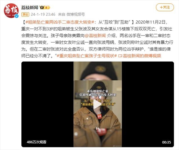 ·重慶姐弟墜亡案孩子母親陳美霖近日向媒體介紹,兩名兇手在一審和二審時態(tài)度發(fā)生大轉(zhuǎn)變,一審時女友葉塵誠一直向張波甩鍋,張波則稱葉塵誠對其有暴力行為。但在二審時張波對此全盤否認(rèn),雙方律師同時為兩位兇手辯護(hù),“誰是誰的律師已經(jīng)分不清了?!?/p>