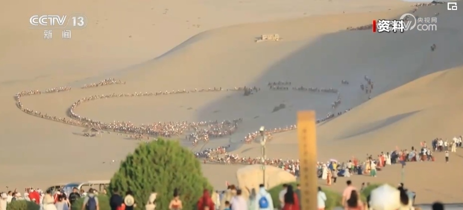 2023年,敦煌的全年接待游客達(dá)1682萬(wàn)人次,特別是5月—10月的旅游旺季,鳴沙山上、月牙泉邊都擠滿了游客,莫高窟里也是人頭攢動(dòng)。