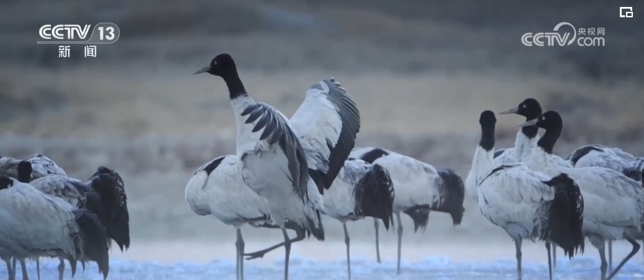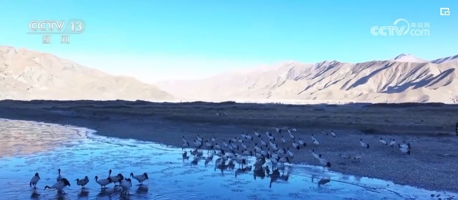 西藏的越冬水鳥主要有黑頸鶴、斑頭雁、赤麻鴨等。監(jiān)測隊設(shè)立了505個觀測點,共記錄調(diào)查軌跡數(shù)407條,觀測到水鳥45種。其中,包括兩種國家一級保護(hù)動物,分別是黑頸鶴和白尾海雕。7種國家二級保護(hù)動物,分別是灰鶴、鴛鴦、白額雁、斑頭秋沙鴨、黑頸鸊鷉、角鸊鷉、花臉鴨。還有重要生態(tài)、科學(xué)、社會價值的陸生野生動物36種。