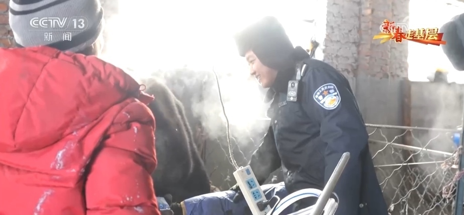 我們在采訪期間,還碰上了在冰雪路段剎車失靈導(dǎo)致側(cè)翻的兩位過客。驚魂未定的兩人被路過的轄區(qū)民警帶到了馬背警隊(duì),阿其圖一邊安頓二人吃飯休息,一邊幫他們救援拖車。