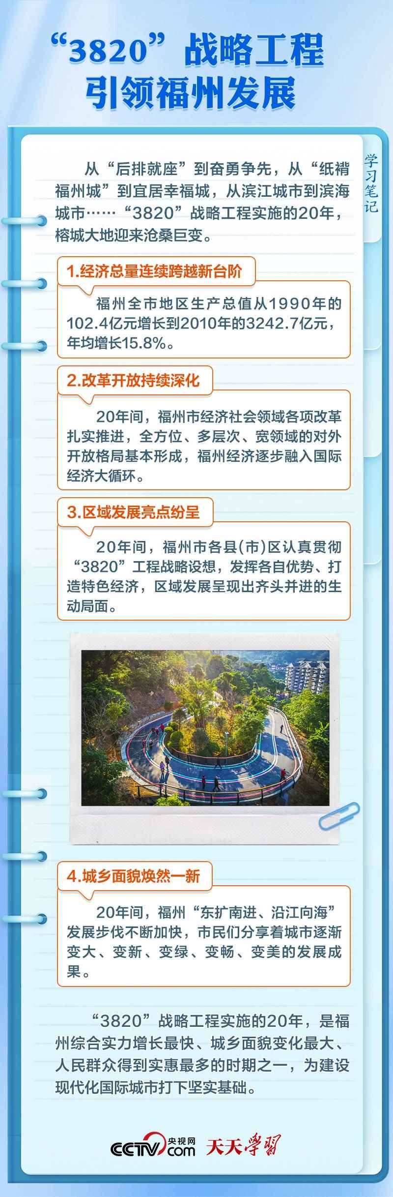 上世紀(jì)90年代,習(xí)近平在福州工作期間,親自主持編制了《福州市20年經(jīng)濟(jì)社會發(fā)展戰(zhàn)略設(shè)想》(簡稱“3820”戰(zhàn)略工程),系統(tǒng)謀劃了福州3年、8年、20年經(jīng)濟(jì)社會發(fā)展的目標(biāo)、步驟、布局、重點(diǎn)等,為福州擘畫了美好藍(lán)圖,確立了總綱領(lǐng)、總方略。