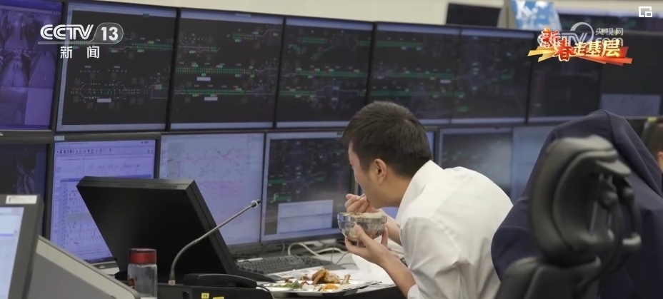 記者的眼前布滿了電腦監(jiān)控屏,調(diào)度員“標配”兩個動作:低頭記錄信息、抬頭盯著屏幕,就連吃飯也幾乎雙目平視。