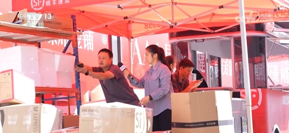 記者在現(xiàn)場(chǎng)發(fā)現(xiàn),一些毛絨玩具等商品被零散地放在快遞點(diǎn),并沒有及時(shí)被打包??爝f員說他從早上7時(shí)30分就提前過來,但包材很快就用完了,這是他沒想到的。
