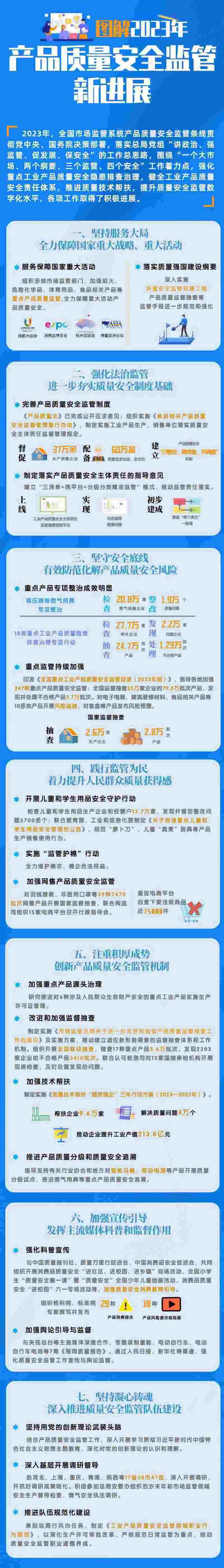 同時市場監(jiān)管總局2024年將分類制定20種重點工業(yè)品、30種重點消費品和13種材質(zhì)食品相關產(chǎn)品生產(chǎn)單位質(zhì)量安全風險管控清單,對質(zhì)量下滑明顯、安全隱患突出的高風險產(chǎn)品,研究實行生產(chǎn)準入管理。選擇50種關系國計民生、量大面廣、社會關注度高的重點產(chǎn)品,連續(xù)開展評價性抽查,為分析形勢、評估產(chǎn)品質(zhì)量安全狀況提供參考。