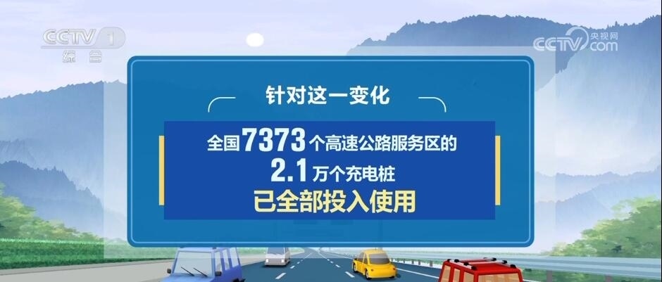 今年公路出行還有一個(gè)新變化,就是在小客車出行當(dāng)中,新能源車輛占比增多。針對(duì)這一變化,目前,全國7373個(gè)高速公路服務(wù)區(qū)的2.1萬個(gè)充電樁已全部投入使用。