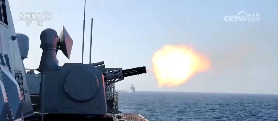 編隊(duì)剛到達(dá)指定海域,“戰(zhàn)斗”隨即打響。指揮員密切關(guān)注戰(zhàn)場(chǎng)態(tài)勢(shì)、調(diào)整艦艇航行狀態(tài),隨時(shí)準(zhǔn)備抗擊來襲目標(biāo)。火控臺(tái)操作手穩(wěn)穩(wěn)握住操作桿,牢牢鎖定目標(biāo)、校正射擊諸元,做好隨時(shí)抗擊準(zhǔn)備。待靶機(jī)進(jìn)入有效射程后,主、副炮接續(xù)開火,成功命中目標(biāo)。
