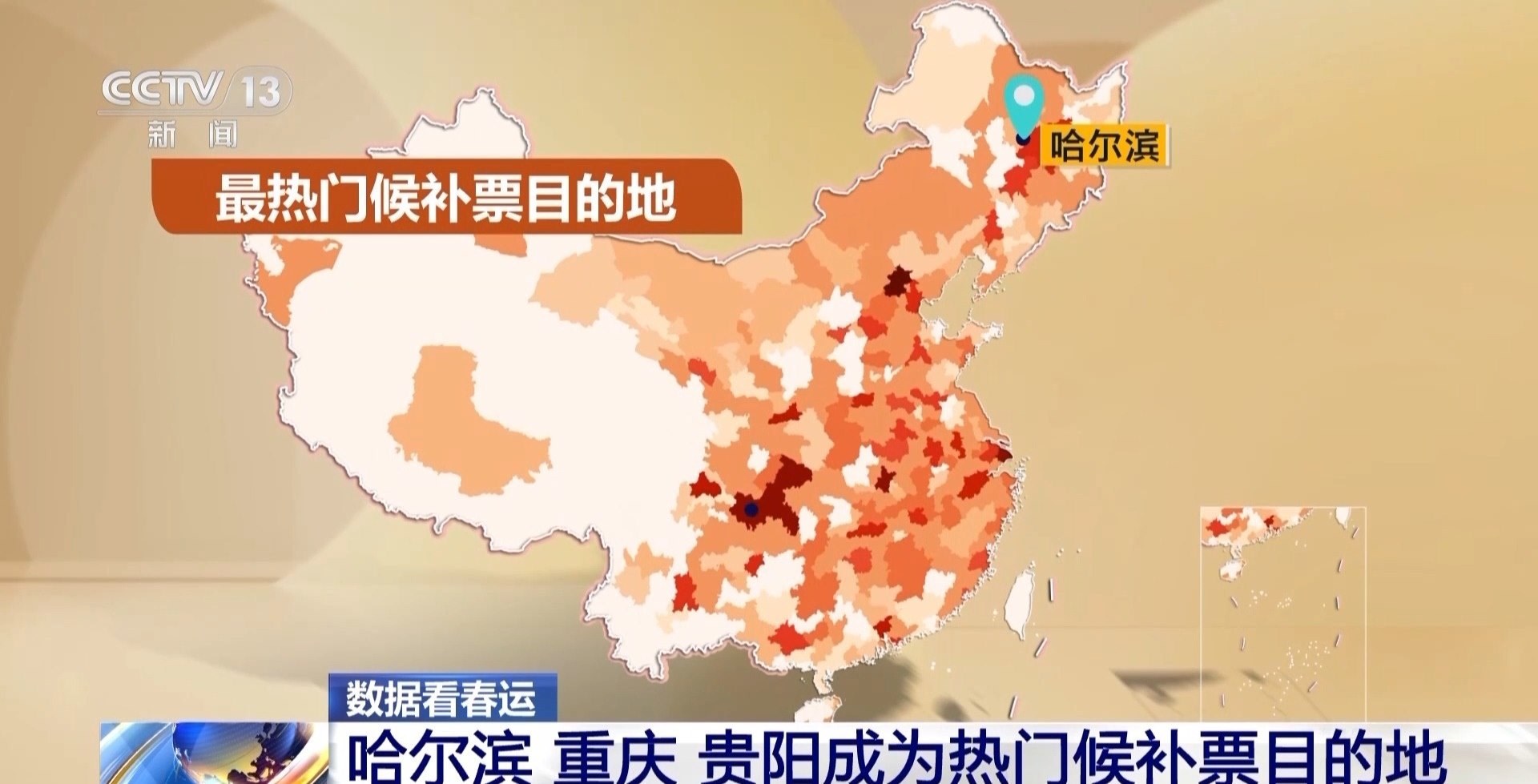 根據(jù)12306數(shù)據(jù)平臺的候補票情況看,目前哈爾濱成為最熱門的候補票目的地。哈爾濱不單單吸引南方人,天津、北京、廣州、沈陽這四個城市到哈爾濱的候補票數(shù)量也是排名靠前。此外,重慶和貴陽也是頗為熱門的候補票目的地,從廣州、深圳、東莞去往重慶和貴陽的車票也很搶手。