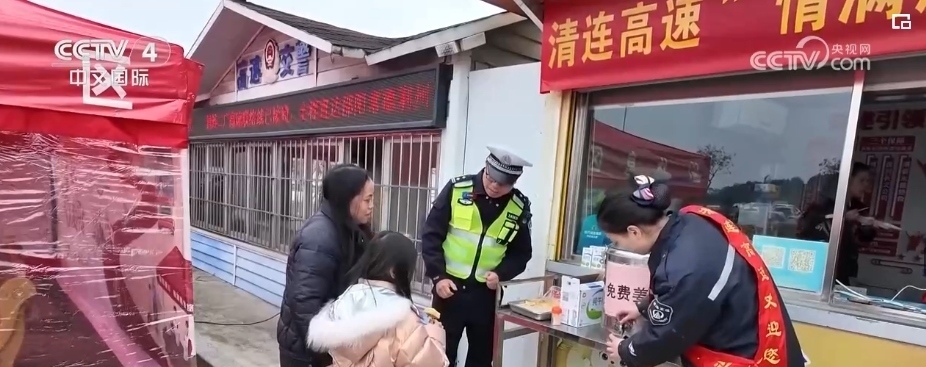 春運期間,廣東清遠市公安局在全市范圍內設置了34個春運暖心服務點?,F(xiàn)場工作人員除了提醒引導廣大司乘人員嚴格遵守交規(guī),共同打造安全、暢通的高速公路通行環(huán)境之外,還對在服務區(qū)內休整的司乘人員免費提供暖心服務,打造溫暖春運路。