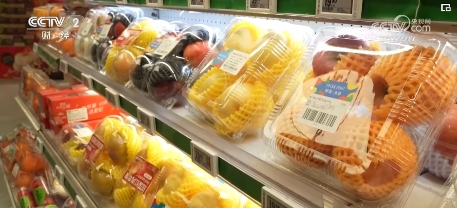 除了蘋果,各類葡萄、柑橘、車?yán)遄?、草莓、藍(lán)莓、菠蘿、榴蓮等水果也大量上市。僅記者采訪的這家生鮮超市,新奇特品種相比2023年,就有5%—10%的增長,春節(jié)前更是有100多款水果在店內(nèi)銷售,豐富了百姓的“果盤子”。