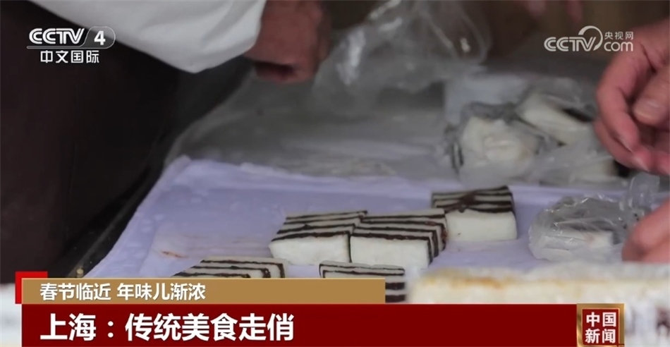 在上海,許多古鎮(zhèn)張燈結(jié)彩迎接春節(jié),老字號食品店也排起了長龍。在一家糕團店前,購買傳統(tǒng)糕點的顧客絡(luò)繹不絕,崇明糕、定勝糕、紅糖糕等各具特色的傳統(tǒng)糕點,不僅香甜美味,還能為新年討得一個好彩頭。