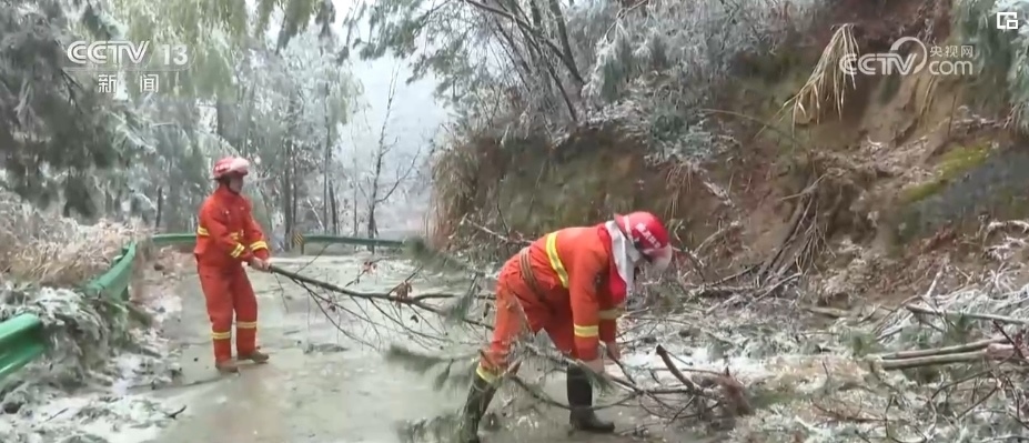 潛山市第一時間協(xié)調組織消防、供電、城管、交運等多部門聯(lián)合行動,在結冰路段開展撒鹽、除冰作業(yè),及時清理路上倒伏樹枝,搶修受損電桿電線。