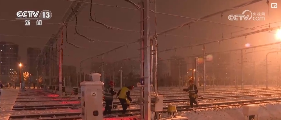 合肥連續(xù)兩天發(fā)布暴雪黃色預警。為保障地鐵正常運營,合肥軌道運營公司啟動了應急預案,并組織人員對接觸網進行人工除冰。