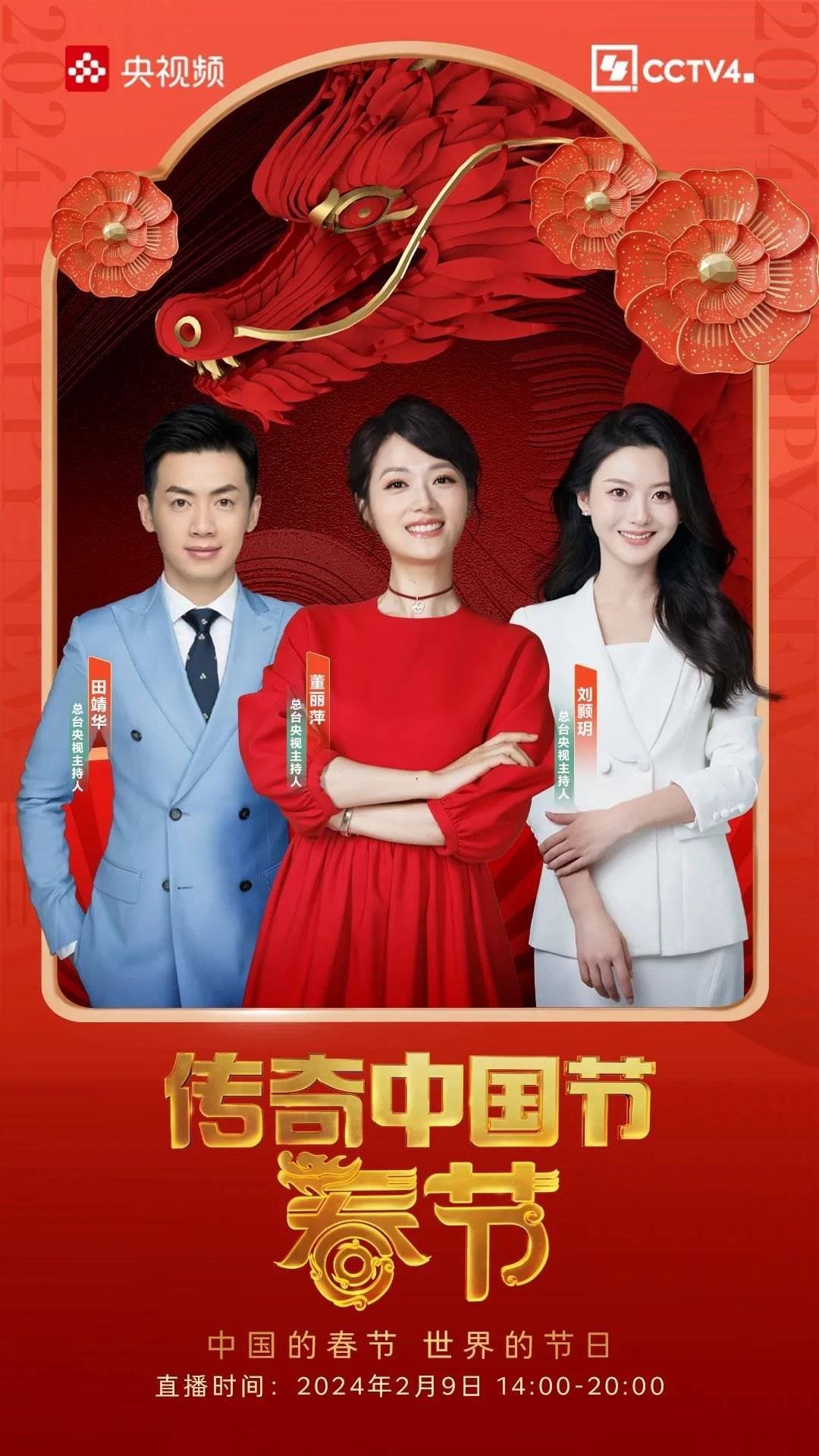 節(jié)目設置“龍騰四?!薄ⅰ褒埿旋擙摗?、“龍嘯九州”等板塊,在北京主演播室、融媒體演播室、香港分演播室和春晚直播點,CCTV4主持人將與知名嘉賓、多地文旅局長、文化名人、非遺文化傳承人,以及春晚明星一同品味春節(jié)的魅力、世界的年味!