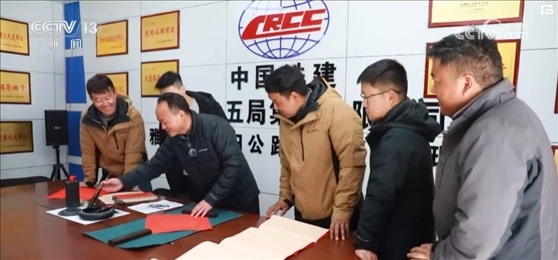 今年恰逢藏歷新年和農(nóng)歷春節(jié)同一天,堅(jiān)守崗位的同事們一起慶祝新年的到來(lái),項(xiàng)目部的藏族小伙還用藏文寫下了新年祝福。