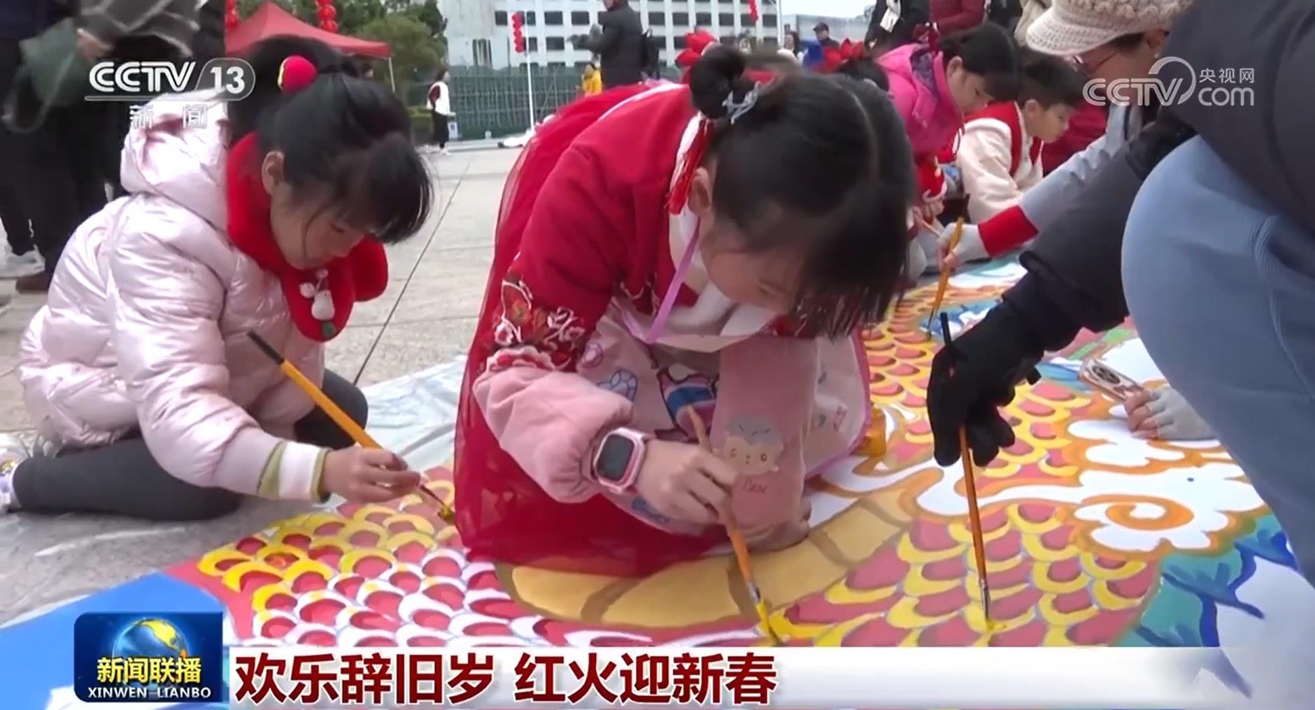 江西上饒弋陽縣,村民們一起合力打年糕,傳承鄉(xiāng)土美食里的非遺文化;在蘇州,逛一逛水上集市,體味小橋流水間的濃濃年味;在福州,看一看非遺展示,體驗傳統(tǒng)文化的魅力;在廣東肇慶七星巖,三百多名少年在長卷上創(chuàng)作百米長龍,繪制龍騰四海的壯闊畫面,展現(xiàn)中華龍文化的深厚底蘊?;饦溷y花吉祥年。青海西寧的傳統(tǒng)社火、重慶銅梁的火龍非遺表演,市民游客在鐵水流星中感受熱烈多彩的紅火場面。