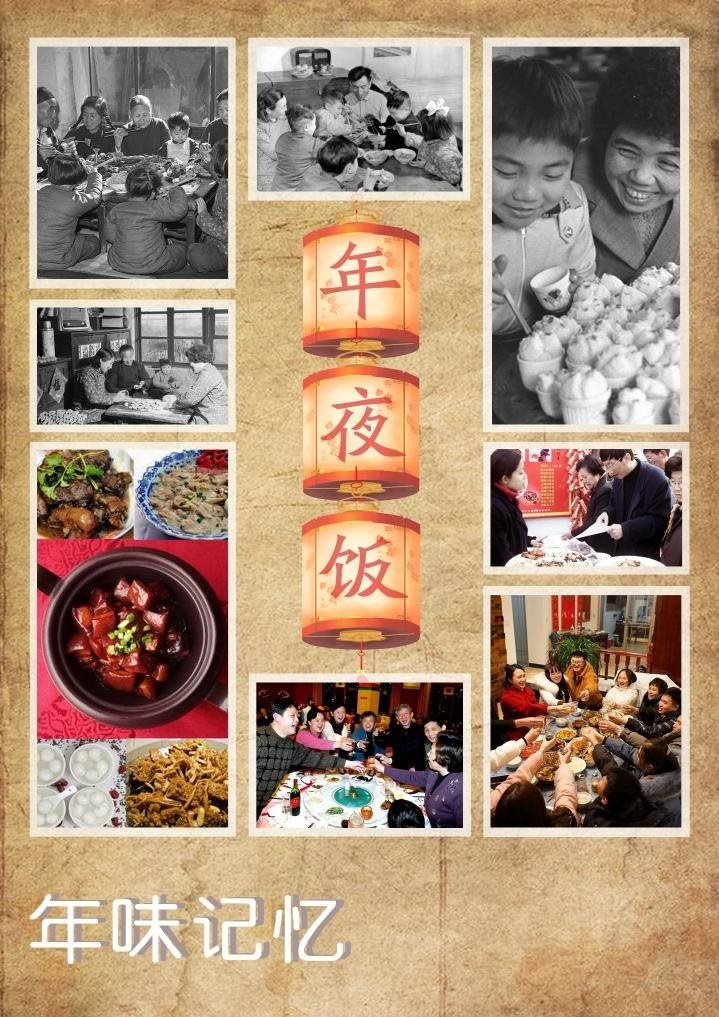 2014年拍攝的拼版照片:“一桌年夜飯”,依次為年糕、發(fā)菜豬手、扁肉燕、長年菜、殺豬菜、餃子、紅燒肉、鴻運當頭、安豆苗、臭鱖魚、湯圓、四喜烤麩、八寶飯(從左至右、從上至下)。
