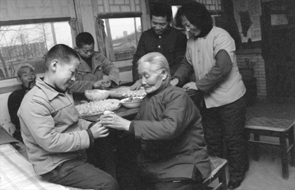 1960年,遼寧鞍鋼老工人于德舉一家在吃年夜飯。為過年準備一頓豐盛的飯菜是當時人們頗費腦筋的事。