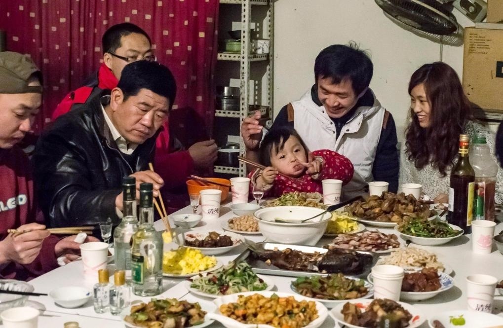 2011年2月2日,浙江諸暨一家公司準備了豐盛的年夜飯,招待800多名沒有回家過年的員工及其家屬,歡聚一堂共迎新年。