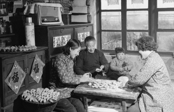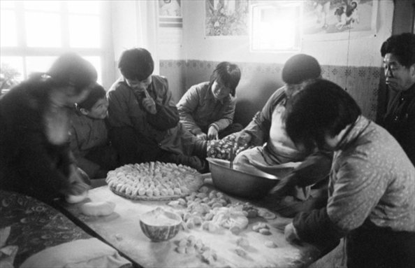 1981年,內蒙古呼倫貝爾牧民高高興興包餃子過春節(jié)。