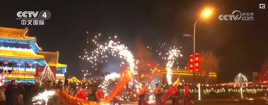 春節(jié)臨近,內(nèi)蒙古烏蘭察布古城新春燈會也正式開燈。栩栩如生的巨型花燈構(gòu)成璀璨燈海,彩燈與古色古香的建筑交相輝映,形成恢弘壯美、流光溢彩的美麗景象?,F(xiàn)場打鐵花、舞火龍、煙花秀等民俗活動(dòng)輪番上演,令游客流連忘返。