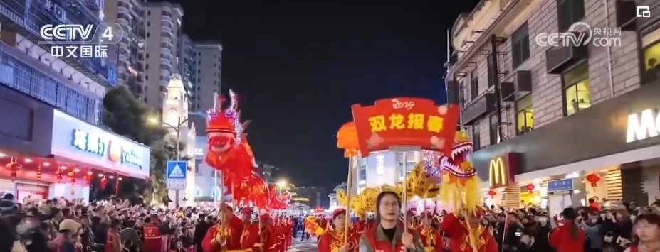 這幾天在廈門同安,盛大的傳統(tǒng)踩街民俗活動(dòng)與古城燈會同步開啟。舞龍、舞獅、腰鼓隊(duì)等巡游隊(duì)伍從同安城中心出發(fā),表演者們身著盛裝、手持道具,先后經(jīng)過同安鐘樓、同安縣衙舊址等地,與市民游客熱情互動(dòng)。