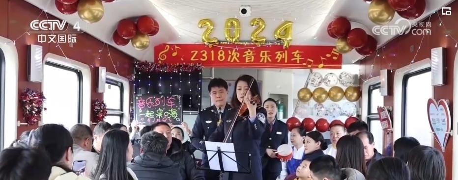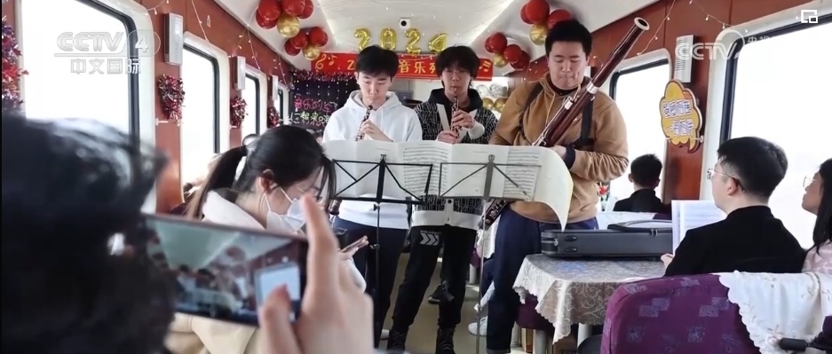 隨著春節(jié)臨近,在外務(wù)工的游子們紛紛踏上了回家的旅途。在青島北開往成都西Z318次列車上,悅耳歡快旋律響起,列車工作人員邀請3位學(xué)生旅客,為大家演奏了悠揚(yáng)歡快的樂曲。