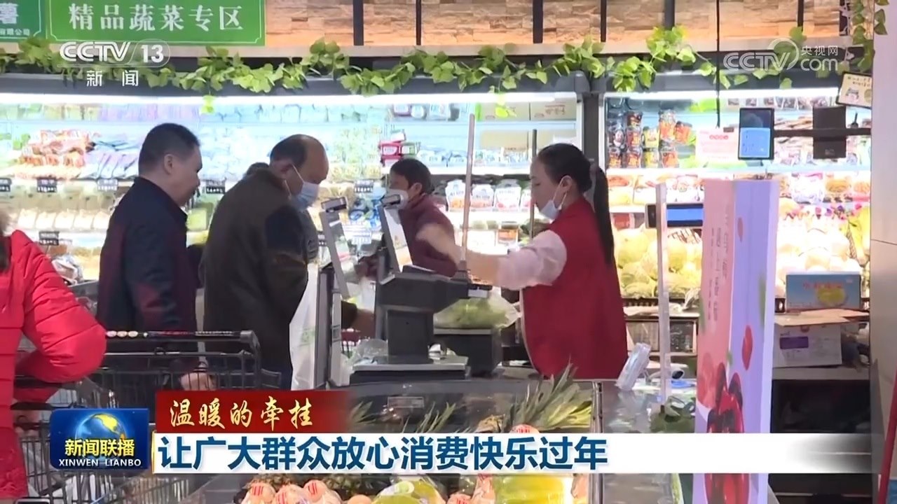 央視網(wǎng)消息(新聞聯(lián)播):春節(jié)是中國(guó)最重要的傳統(tǒng)節(jié)日。習(xí)近平總書記在天津考察時(shí)強(qiáng)調(diào),各級(jí)黨委和政府要加強(qiáng)節(jié)日期間民生商品的產(chǎn)銷保供,確保數(shù)量充足、品類豐富、質(zhì)量可靠,讓廣大群眾放心消費(fèi)、快樂(lè)過(guò)年。春節(jié)前夕,從中央到地方,多措并舉,保障春節(jié)期間市場(chǎng)供應(yīng),穩(wěn)定消費(fèi)市場(chǎng)價(jià)格,節(jié)日市場(chǎng)貨品豐富,供應(yīng)充足。