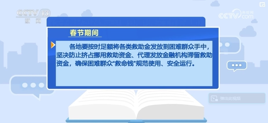 各地要按時足額將各類救助金發(fā)放到困難群眾手中,堅決防止擠占挪用救助資金、代理發(fā)放金融機構(gòu)滯留救助資金,確保困難群眾“救命錢”規(guī)范使用、安全運行。