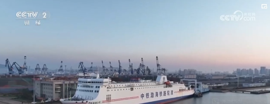 中鐵渤海3號(hào)渡船全長(zhǎng)182.6米、寬24.8米,滿載排水量可達(dá)16229噸,單航次可載運(yùn)一列50節(jié)貨物列車和50輛載重汽車、25輛小汽車以及716名旅客。