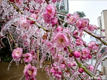長(zhǎng)沙,一夜凍雨后,街頭梅花結(jié)冰。